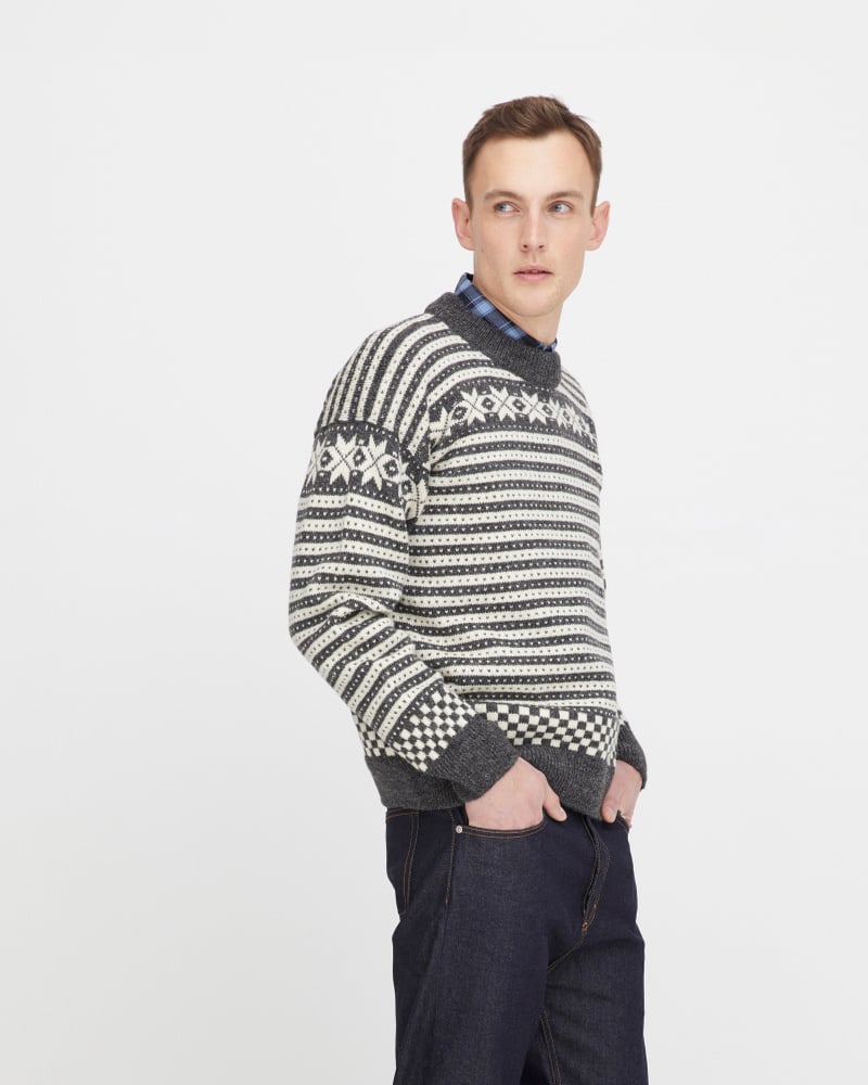3000 NOKFana til herre i norsk ull med det ikoniske mønsteret fra Vestlandet. Tidløs, slitesterk og varm – et stykke norsk kulturarv.