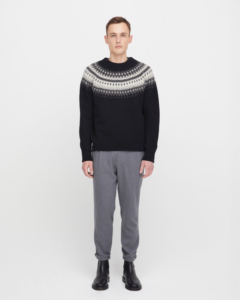 2500 NOKVarde er en genser i norsk ull, produsert i Romsdalen, inspirert av varder, grafiske linjer og mønster fra arkivet vårt.