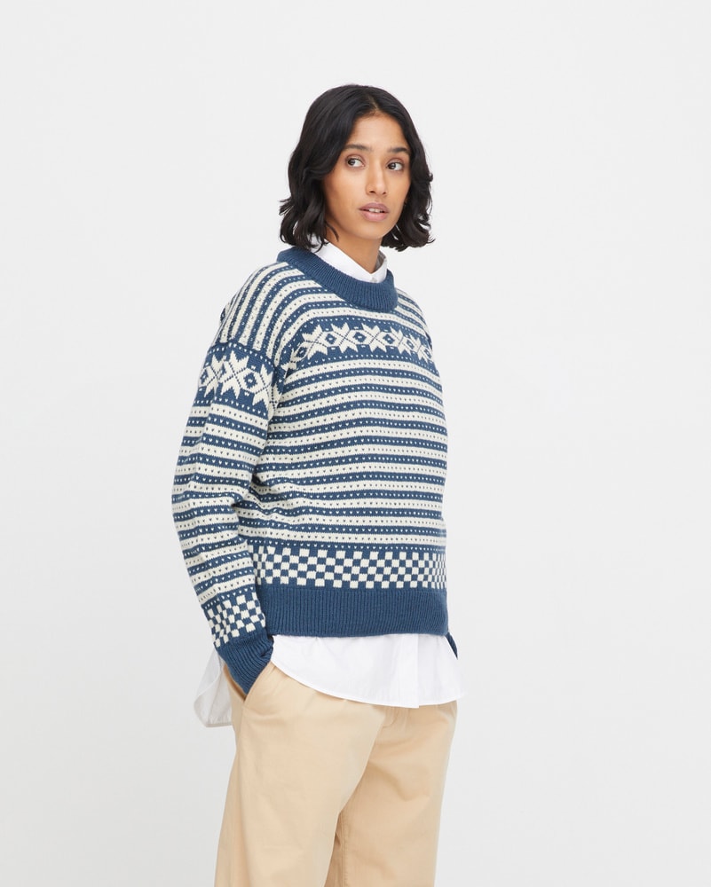Til dame kommer Fanagenseren i vakre og tradisjonelle farger som grå, blå og rustrød i kombinasjon med hvit. Produsert i Norge med respekt for tradisjon og godt håndverk, får du en genser som varer i generasjoner.