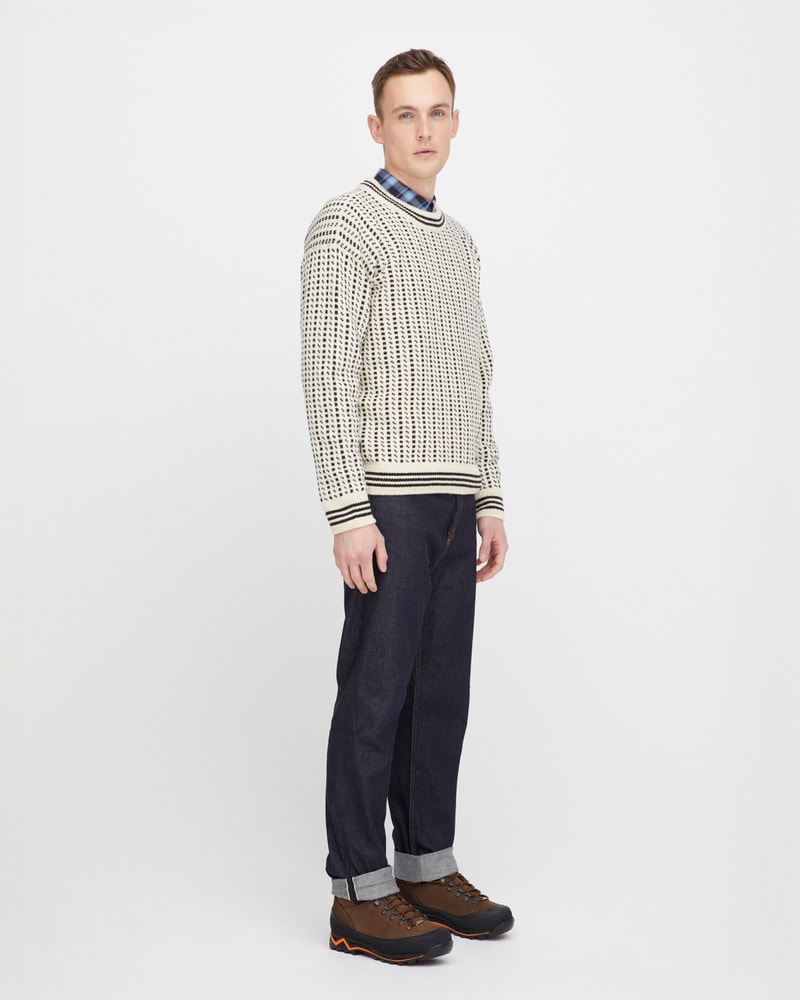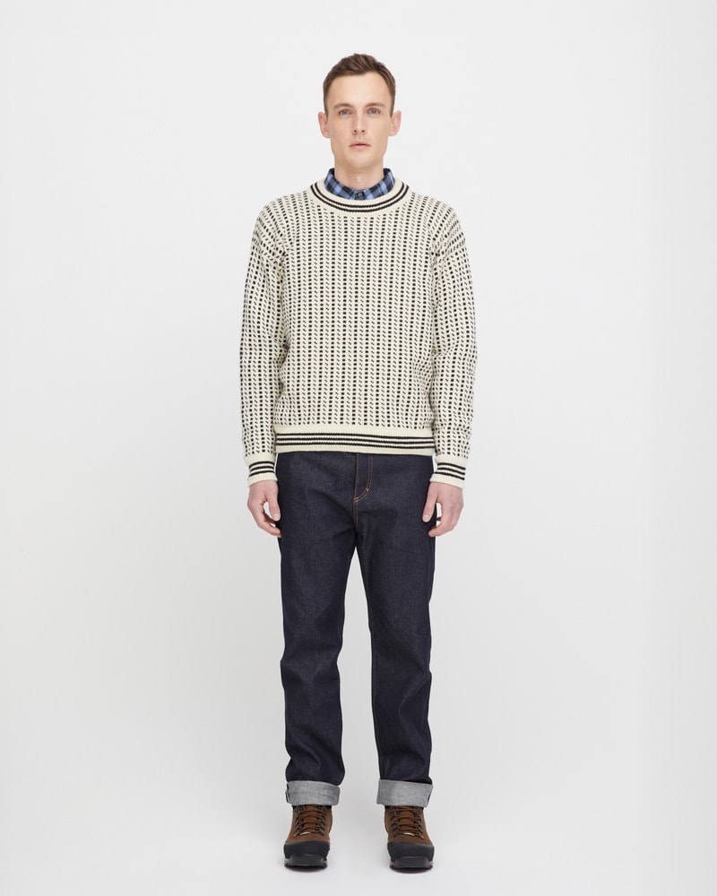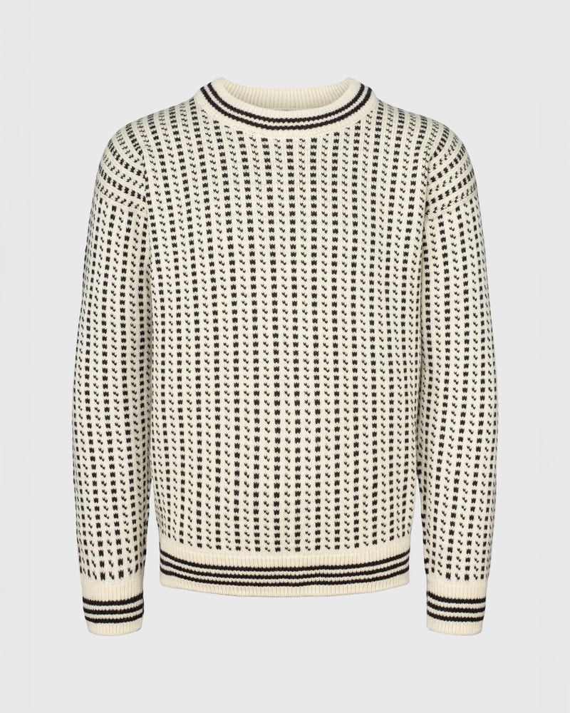 Islenderen er en ikonisk ullgenser med røtter i norsk kystkultur – kjent for varme, slitestyrke og sitt tidløse uttrykk. Den er strikket i norsk ull og varmer like godt på sjøen som i byen. Velg mellom tre fargealternativer: den autentiske i hvit og svart, den maritime i blå og hvit, eller den jordnære i skogsgrønn og hvit. Genseren kommer i størrelsene S–XXL. Dette er et plagg med sjel og tradisjon – en ekte del av norsk kulturarv, produsert i Norge.