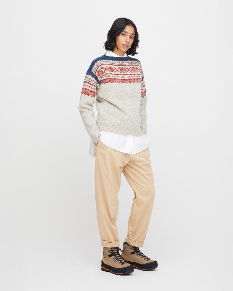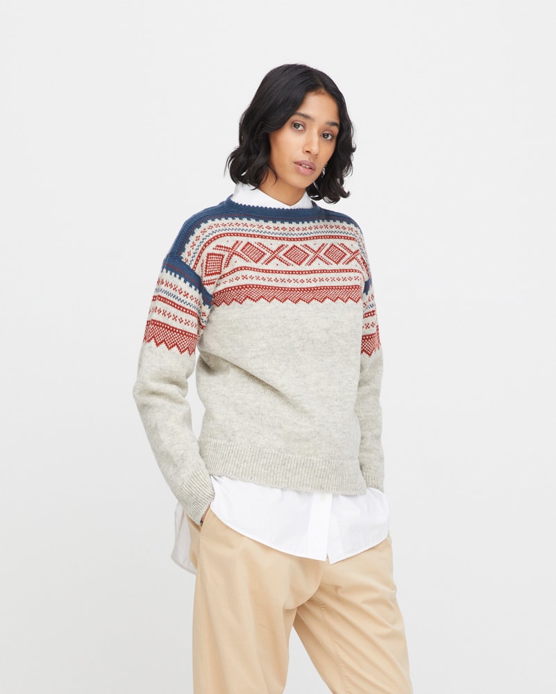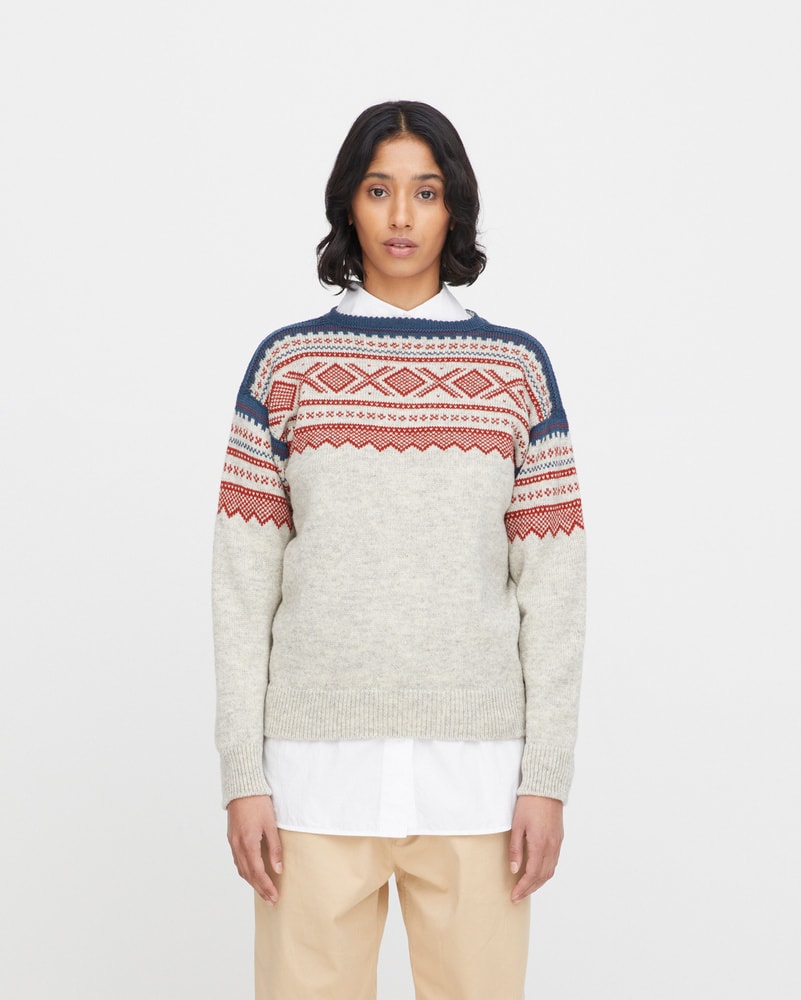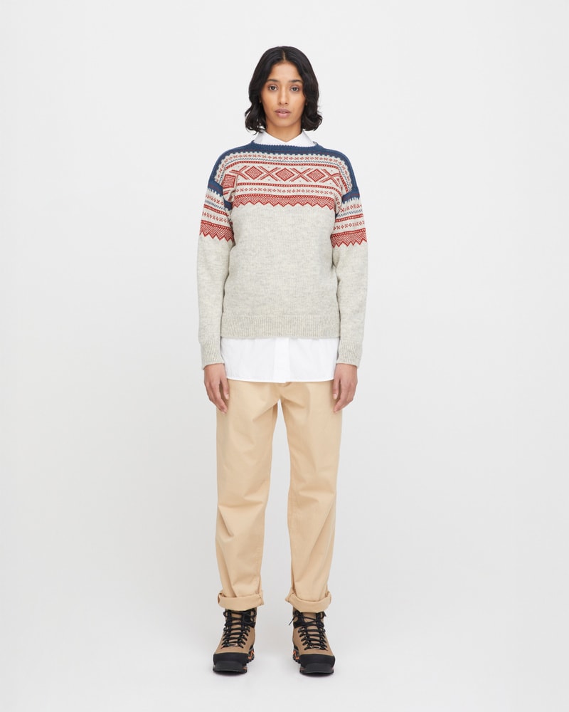 Mariusgenseren er et symbol på norsk design og friluftsliv. Dette er en variant til dame med den klassiske båthalsen. Genseren kommer i den ikoniske marineblå med røde detaljer og en mer sofistikert variant i lys grå med røde og blå mønsterdetaljer. Uansett hvilken farge du velger, får du et tidløst plagg med ekte norsk særpreg. Genseren kommer i størrelse XS-XL.