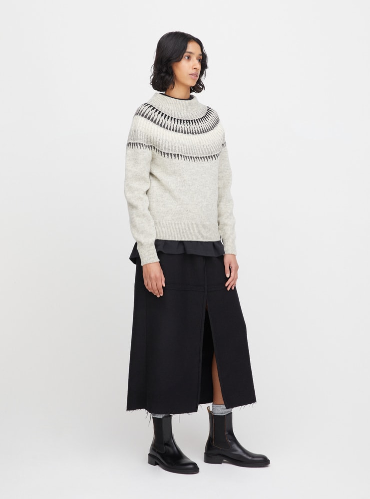 0Spiret er en genser i norsk ull, laget i Romsdalen, inspirert av fjell og tinder.